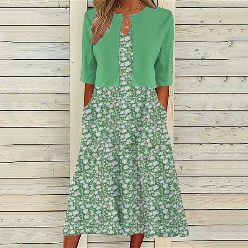 Women's Midi Dress Casual Dress Dress Set Fashion Modern Daily Beach Weekend Regular Fit Flower Half Sleeve V Neck Light Green Pink Red Blue Spring Fall