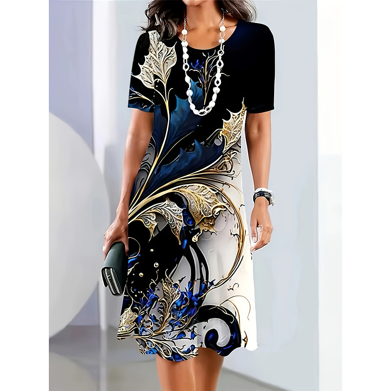 Women's Midi Dress Print Dress Fashion Modern Daily Tea Party Going out Loose Fit Floral Abstract Short Sleeve Crew Neck Black Yellow Blue Dark Blue Summer Spring