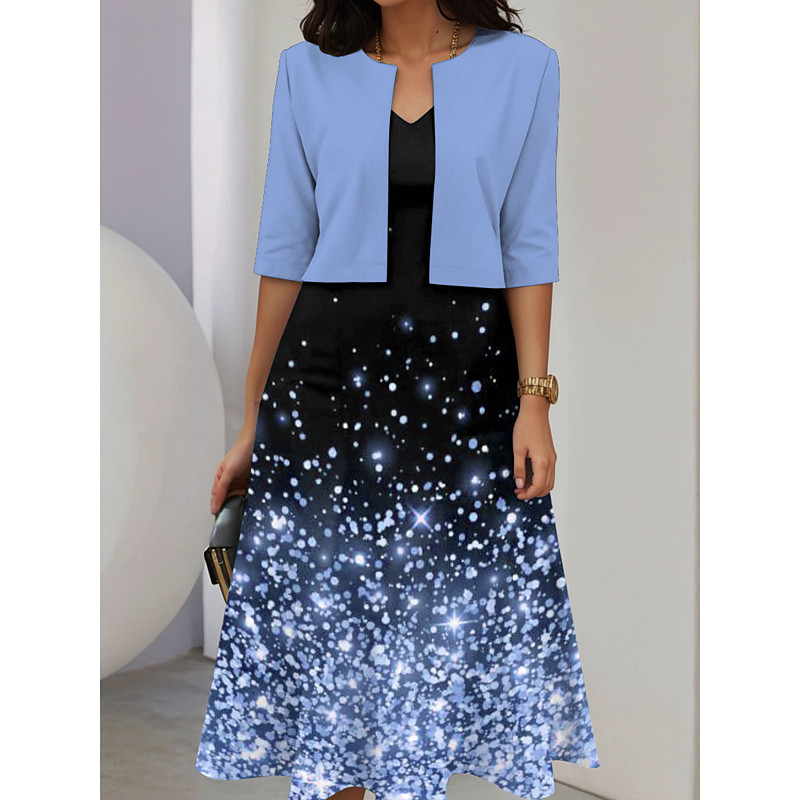 Women's Dress Set A Line Dress Midi Dress Elegant Casual Ombre Graphic Patchwork Print Midi Dress Half Sleeve V Neck Vacation Date Pink Blue Purple Summer Spring Regular Fit