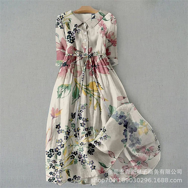 Women's Midi Dress Sundress Vacation Casual Boho Going out Regular Fit Floral Short Sleeve Turndown Blue White White Summer Spring
