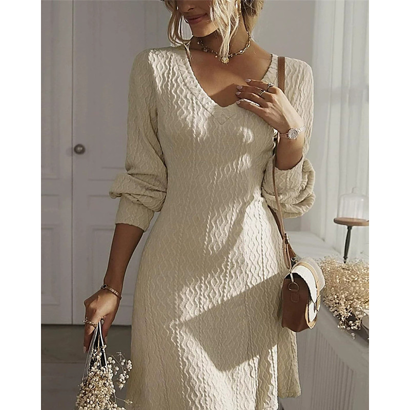 Women's Midi Dress Black Dress Party Dress Casual Dress Cocktail Dress Elegant Fashion Modern Outdoor Party Daily Slim Plain Long Sleeve V Neck Black White Blue Spring Autumn