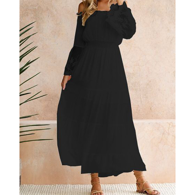Women's Midi Dress Lace Dress Party Dress Cocktail Dress Fashion Modern Party Birthday Evening Party Regular Fit Plain Long Sleeve Off Shoulder Black White Summer Spring