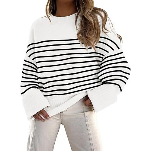 Per donna Felpa Maglione Moda A righe A Coste Girocollo Lavorato a maglia Manica Lunga Top Regolari Maglia All'aperto Uscire Weekend Nero Bianco Autunno