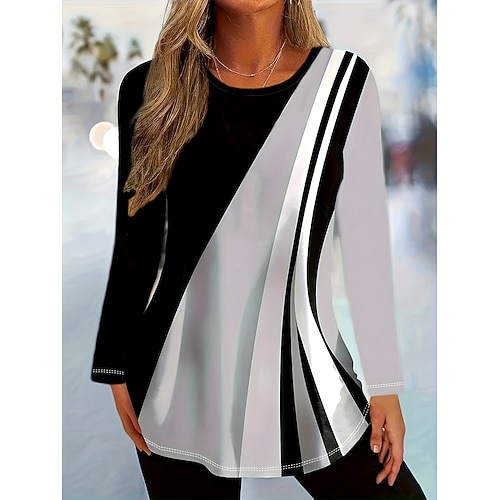 Per donna Maglietta Grafico Geometrico Blocco di colori Vintage Elegante Classico Manica Lunga Girocollo Top Regolari Quotidiano Stampato Blu Nero Primavera Autunno Inverno