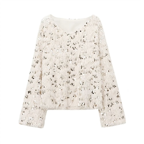 Per donna Felpa Maglione Elegante Streetwear Cool Tinta unica Girocollo Paillettes Patchwork Manica Lunga Top Regolari Maglia All'aperto Casa Capodanno Nero Bianco Estate Primavera