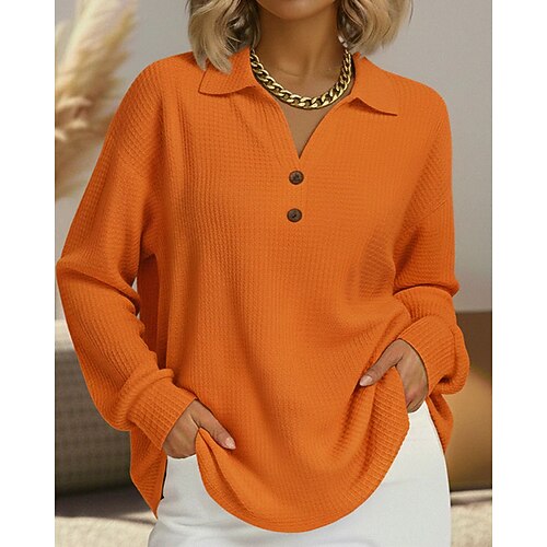 Per donna Blusa Semplice Elegante Manica Lunga Scollo a V Top Regolari Quotidiano Ferie Uscire Patchwork Bottoni Nero Bianco Vino Arancione Autunno