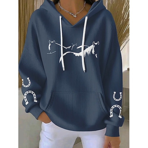Per donna Felpa con cappuccio Grafico Animale Casual Manica Lunga Con Cappuccio Top Regolari Casuale Abbigliamento Quotidiano Sportivo Blu Nero Viola Autunno Inverno