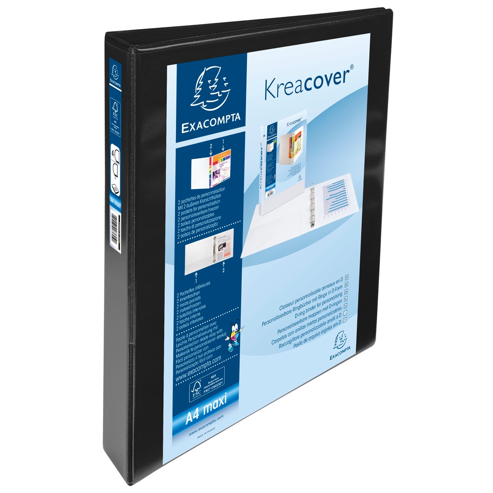 Exacompta Personalisierbares Ringbuch aus PP 1,9mm, 4 Ringe 30mm, Rücken 47mm, 2 äußere Klarsichthüllen, 32x27,7cm für DIN A4 Überbreite - Kreacover