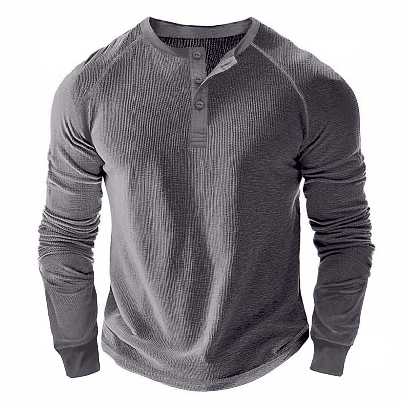 Men's Waffle Henley Shirt Tee Long Sleeve Solid Color Plain Textured Fashion Designer Casual Raglan Sleeves Henley Outdoor Casual Daily Summer Fall Winter Black Light Blue Dark Red Henley T-Shirt