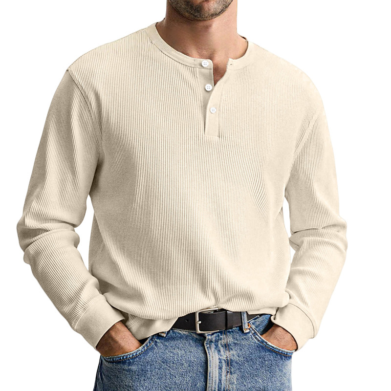 Men's Corduroy Shirt Henley Shirt Tee Long Sleeve Solid Color Plain Fashion Designer Casual Ribbed Henley Outdoor Casual Daily Summer Fall Winter White Gray Light Blue Henley T-Shirt