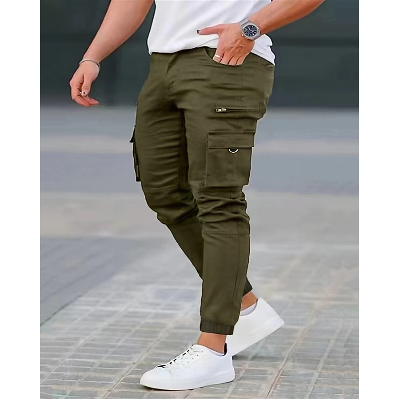 Men's Cargo Pants Trousers Drawstring Pocket Elastic Waist Plain Comfort Sports Outdoor Daily Fashion Casual Black Khaki Micro-elastic