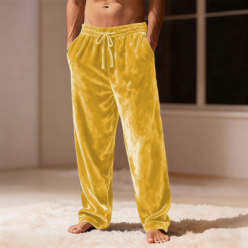 Men's Straight Leg Sweatpants Velvet Pants Drawstring Pocket Elastic Waist Plain Comfort Warm Daily Casual Blue Black Micro-elastic