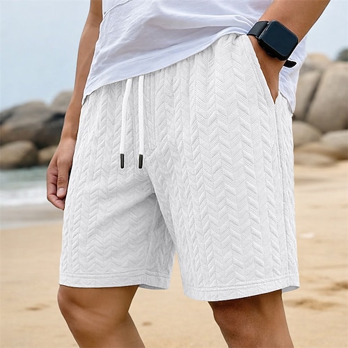 Per uomo Shorts Pantaloncini casual Jacquard Testurizzato Semplice Gallone Comodità Traspirante Sopra il ginocchio Casuale All'aperto Spiaggia Vacanza Moda Nero Bianco Micro-elastico