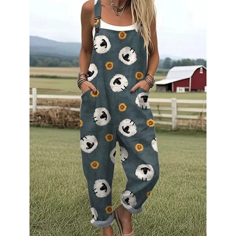 Women's Dungarees Active Animal Sleeveless Sleeveless Wide Leg Square Neck Pocket with Pocket Vacation Daily Loose Fit White Yellow Purple Summer