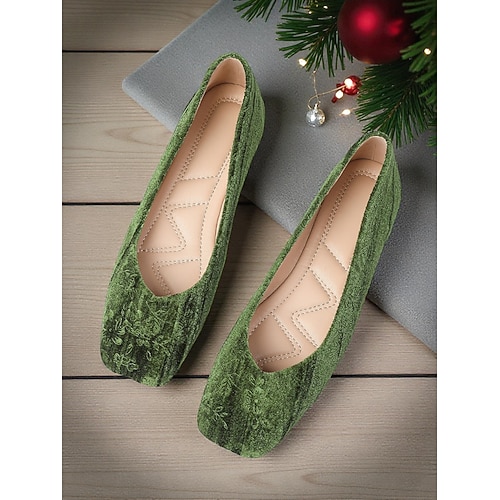 ballerine in velluto rosso da donna: eleganti scarpe slip-on con punta quadrata per feste di Natale, riunioni di festa e occasioni formali