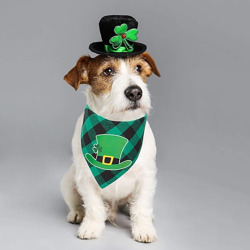 Bandana per animali domestici per il giorno di San Patrizio - motivo scozzese verde baciami, sono irlandese con cappello a forma di trifoglio labbra rosse, sciarpa in poliestere lavabile in