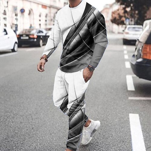 felpa e pantaloni a righe felpa con cappuccio grafica da uomo tuta con cappuccio set rosso blu grigio chiaro girocollo color block 2 pezzi stampa sportivaamp; outdoor casual 3d streetwear geometrico