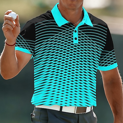 Per uomo Illusione ottica Geometrico Polo Sportivi Manica Corta Magliette polo Camicie con Colletto Casual Athleisure Bottoni Tessuto retato traspirante Primavera Estate Blu Viola Verde