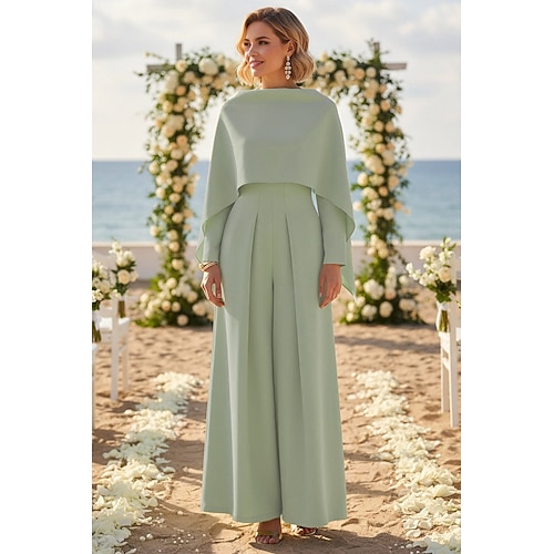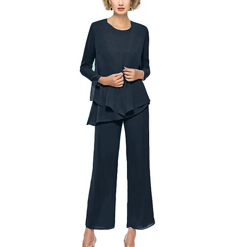 Completo Pantalone Lunghezza al pavimento Abito da cerimonia per signora Manica Lunga Collo gioiello Elegante Semplice Ospite di nozze Serata Formale Ricevimento di matrimonio Chiffon con Tinta unita