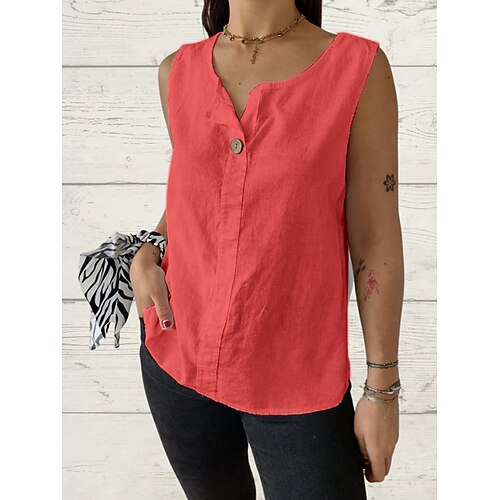 Per donna Top estivi Blusa Arricciato Patchwork Bottoni Tinta unica Semplice Elegante Vintage Signore Senza Maniche Girocollo Top Regolari Quotidiano Lavoro Ferie Nero Bianco Rosso Blu Reale Verde
