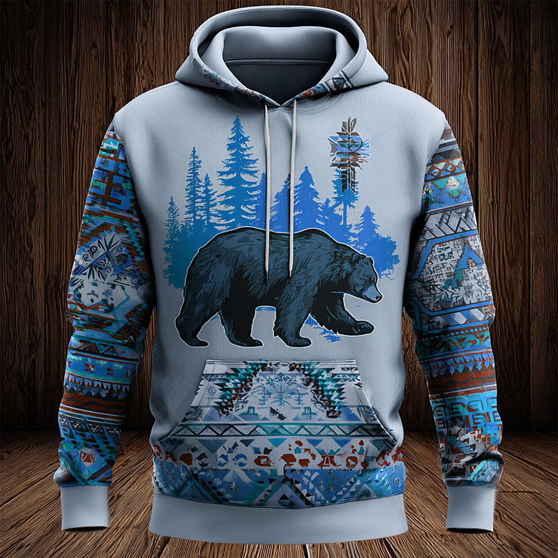 Men's Wolf Tribal Pullover Hoodie Sweatshirt Fashion Ethnic Vintage Retro Crew Neck Outdoor Travel Party Gift Blue Brown Drawstring Fall Winter Designer S M L XL XXL XXXL