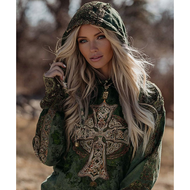 St. Patrick's Day Women's Lucky Pullover Hoodie Sweatshirt Graphic Geometric Tribal Elegant Punk Vintage Long Sleeve Hooded Regular Tops Casual Home Street Dark Green Spring Fall Winter