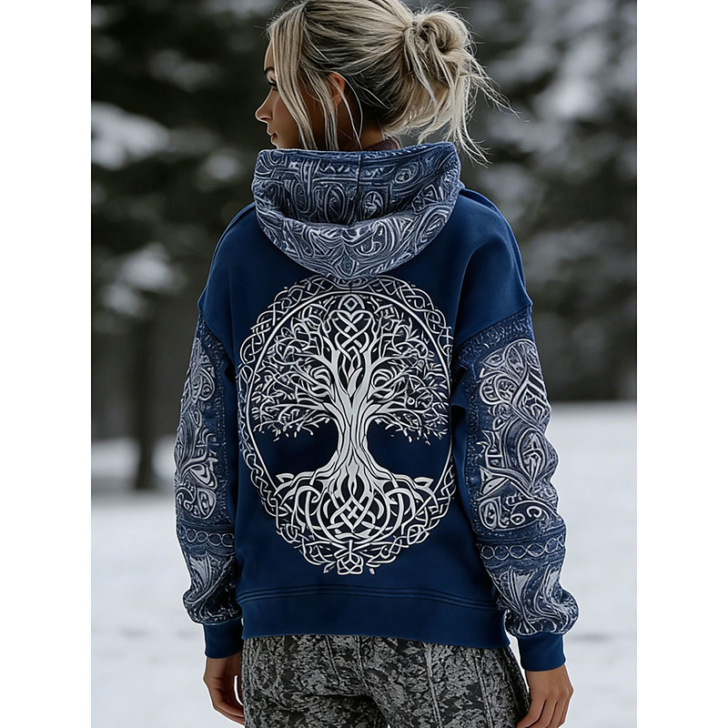 Women's Pullover Hoodie Sweatshirt Graphic Geometric Tribal Casual Long Sleeve Hooded Regular Tops Casual Party Evening Wear Street Print Blue Pink Spring Fall Winter