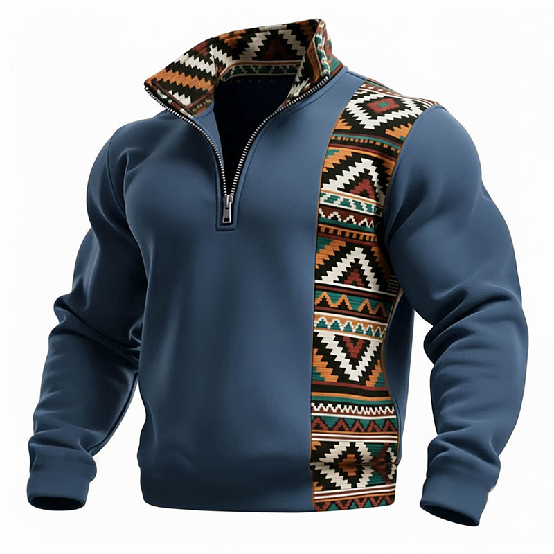 Men's Tribal Cowboy Sweatshirt Ethnic Vintage Retro Long Sleeve Stand Collar Outdoor Work Gift Brown Khaki Brown 2 Zipper Fall Winter Designer S M L XL XXL XXXL
