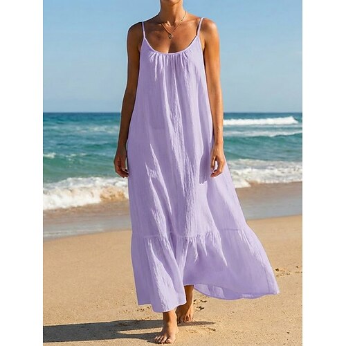 Per donna Abito Midi 100% cotone Abito a Tubino Vestito Estivo Abito Sottoveste Moda Moderno Quotidiano All'aperto Vacanza Vestibilità comoda Semplice Senza Maniche Spalline Nero Bianco Viola Azzurro