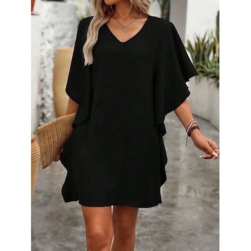 Per donna Mini Abito Abito a Tubino Casual Quotidiano Vestibilità comoda Semplice Mezza Manica Scollo a V Blu Nero Vino Rosso Estate Primavera Autunno