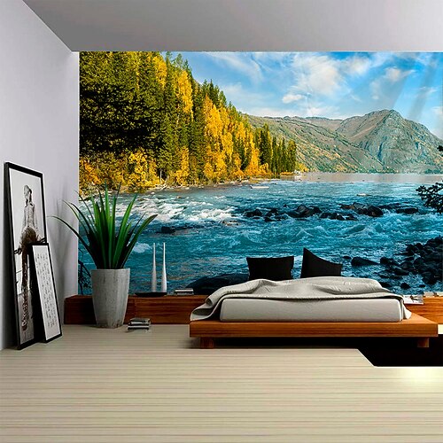 Arazzo appeso di paesaggio foresta grande arazzo murale decorativo fotografia fondo coperta tenda decorazione per casa camera da letto soggiorno
