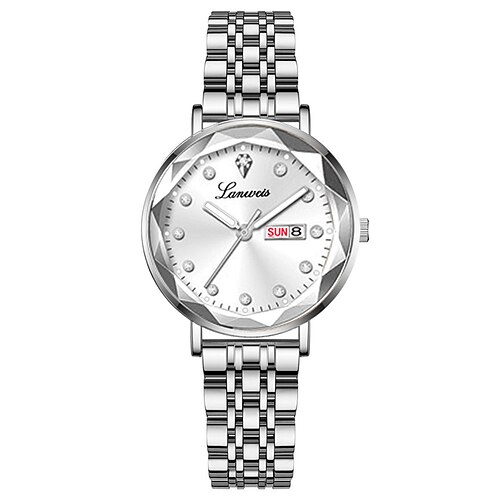 Da donna Da uomo Orologio al quarzo Grande quadrante Moda Strass Affari Luminoso Calendario Data Impermeabile Cinturino in acciaio inossidabile Guarda