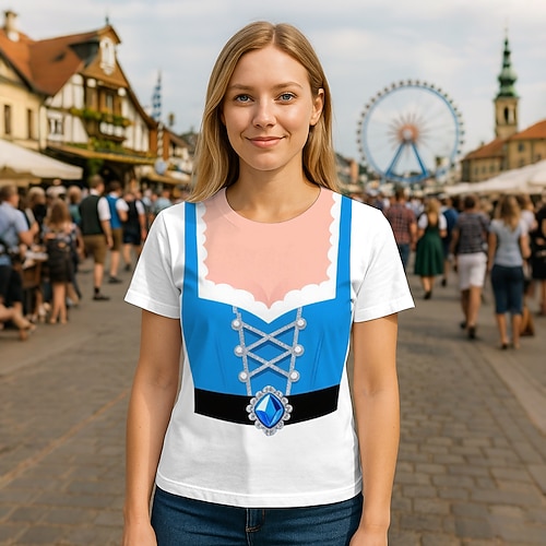 bavarese Monaco Tedesco Corte T-shirt Stampa Dirndl Grafico per Per donna Adulti Stampa 3D per Carnevale Birra Oktoberfest Feste