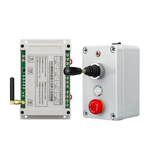 Industrielle 4-Kanal-Funkfernsteuerung mit Joystick, 30-A-Hochleistungs-FSK-Frequenzsprung-Entstörungssteuerung für Kranhebezeuge, universell AC/DC 12 V–450 V