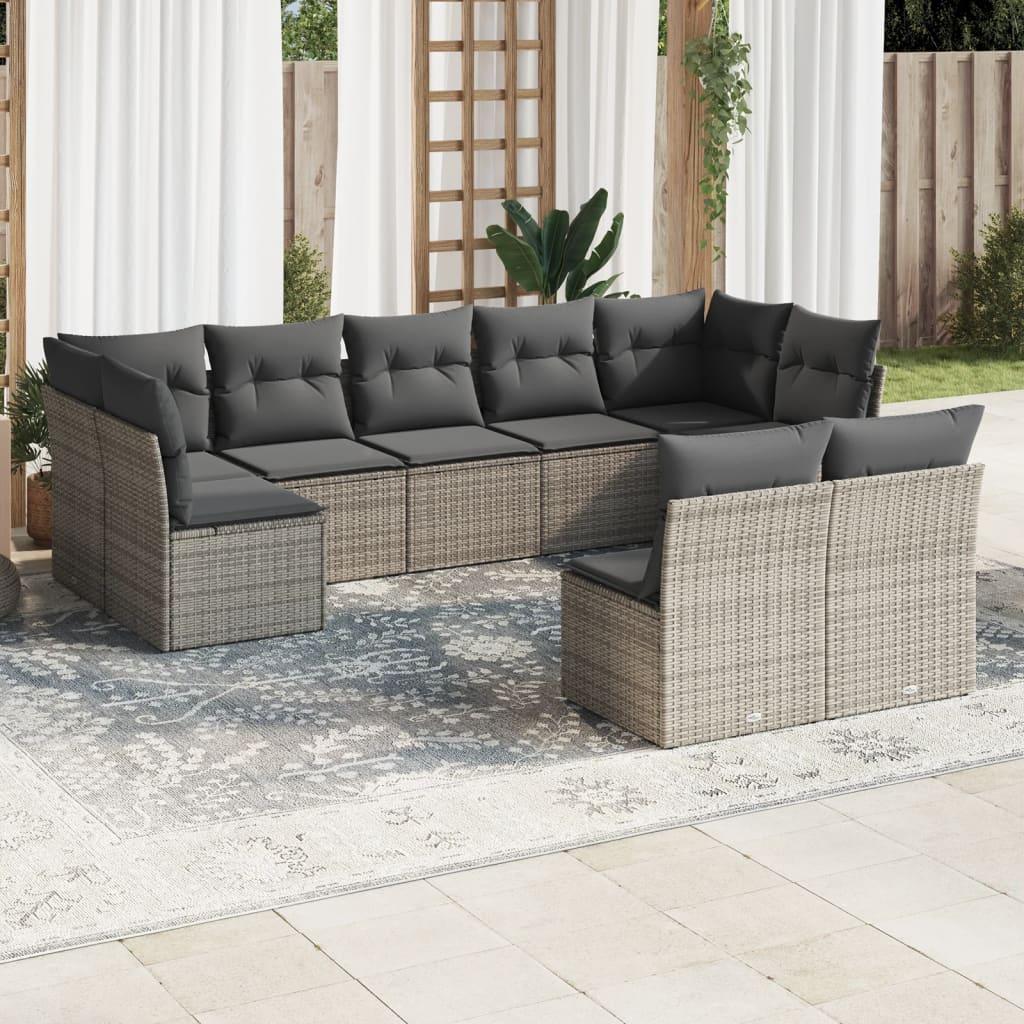 Sofasæt til haven 9 dele med hynder polyrattan grå