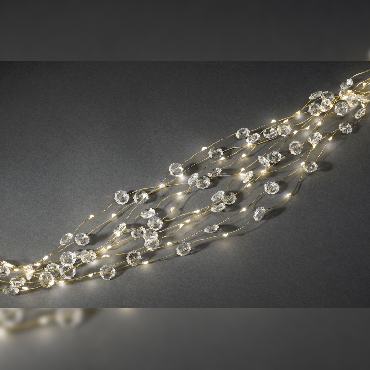Konstsmide LED Diamantenlametta 24 Stränge à 20 Dioden , 480 warm weiße Dioden, 12V Innentrafo, goldfarbener Draht
