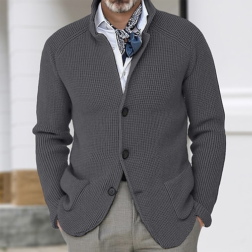 Herren Pullover Strickjacke Gerippt Stricken Normale Oberteile Gestrickt Button-Down Einfach Stehkragen Urlaub Mode Lässig Alltagskleidung Bekleidung Frühling Herbst Blau Schwarz S M L