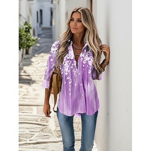 Damenhemd Langarm Button-Down-Bluse Einfarbig Ombre Grafik Vintage Tropisch Tägliches Kurzarmhemd Kragen Reguläre Oberteile Täglich Hellgrün Blau Lila Sommer Herbst