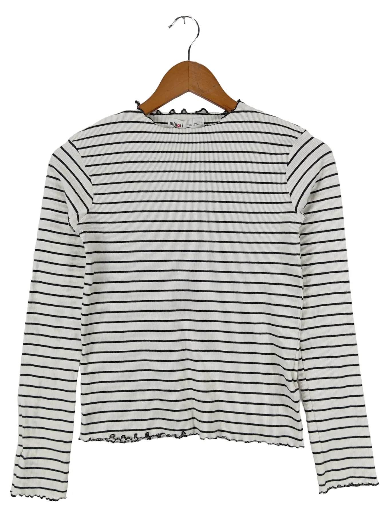 MINOTI Langarmshirt Kinder 158/164 Weiß Schwarz Streifen