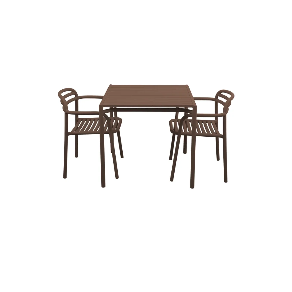 Cane-line, Bliss Esstisch inkl. zwei Stühlen mit Armlehnen – Wüstenrotes Aluminium