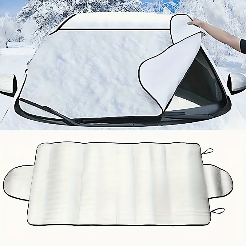 Winter Car Windshield Cover, Snow Frost Guard Ice Protector, Dustproof and Heat-Resistant Sunshade, Easy to Install Flexible Windshield Cover for Most Vehicles, White Winter Auto Accessory