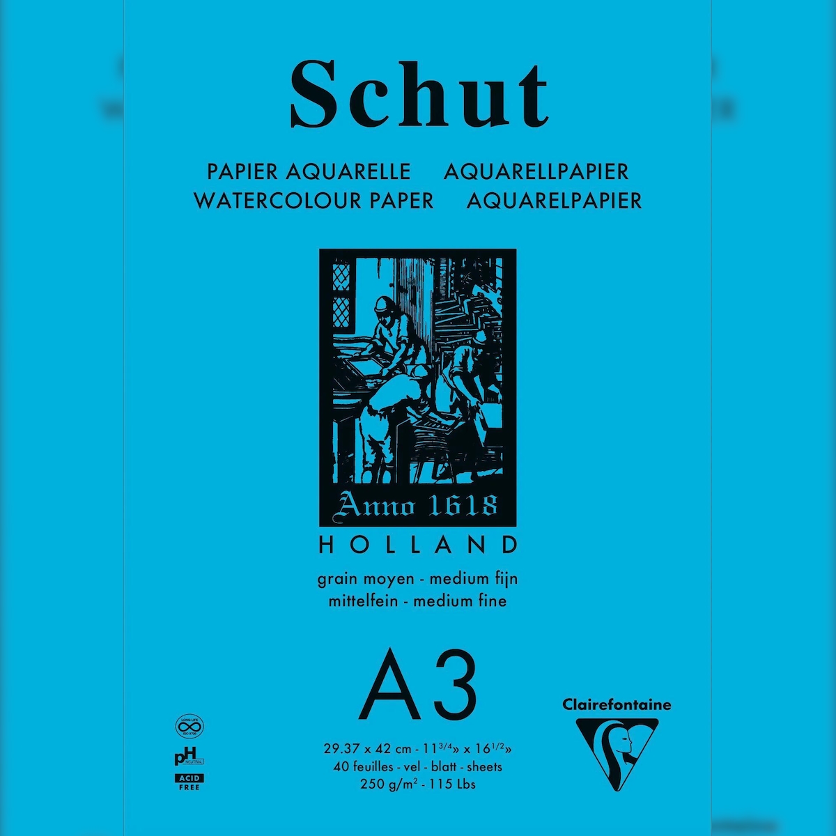 Clairefontaine 3x Schut Aquarellblock A3 geleimt, 40 Blatt weiß 250g, mittelfeine Körnung - 975735C