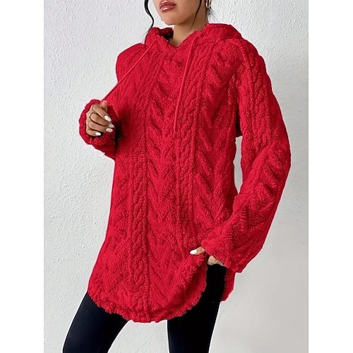 Per donna Blusa Tinta unica Elegante Casual Manica Lunga Con Cappuccio Top lunghi Quotidiano Nero Rosso Viola Grigio scuro Albicocca Primavera Autunno Inverno