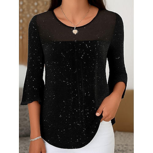 Per donna Camicia Blusa Tinta unica Essenziale Informale Manica a 3/4 Girocollo Top regolari Giornaliero Increspato Nero Bianco Rosa Estate Primavera