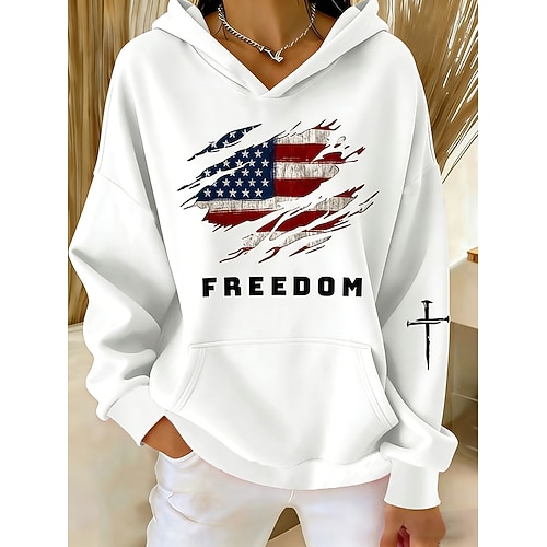 Per donna Felpa con cappuccio Grafico Lettera Vintage Casual Manica Lunga Con Cappuccio Top Regolari Casuale Blu Nero Bianco Rosso Primavera Autunno