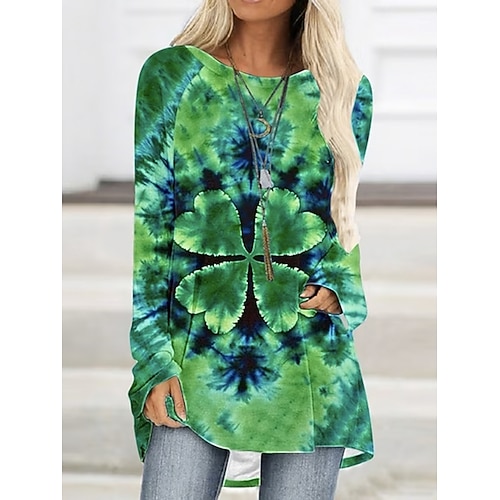 Festa di San Patrizio Per donna Maglietta Grafico Trifoglio Vintage Elegante Classico Manica Lunga Girocollo Top lunghi Quotidiano Stampato Nero Verde Primavera Autunno