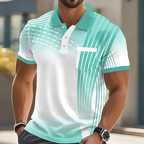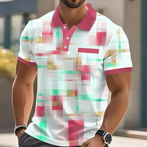 Herren Geometrisch Polo Kurzarm Polo-Shirts Hemden mit Kragen Business-Casual Outdoor Athleisure Alltagskleidung 3D-Druck Knöpfe Frühling Sommer Blau Rote Purpur