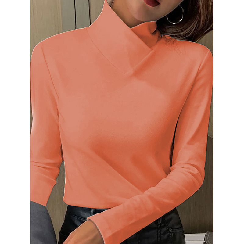 Women's T Shirt Plain Elegant Vintage Stylish Long Sleeve High Neck Regular Tops Daily Blue Pink Purple Orange Green Spring Fall Winter