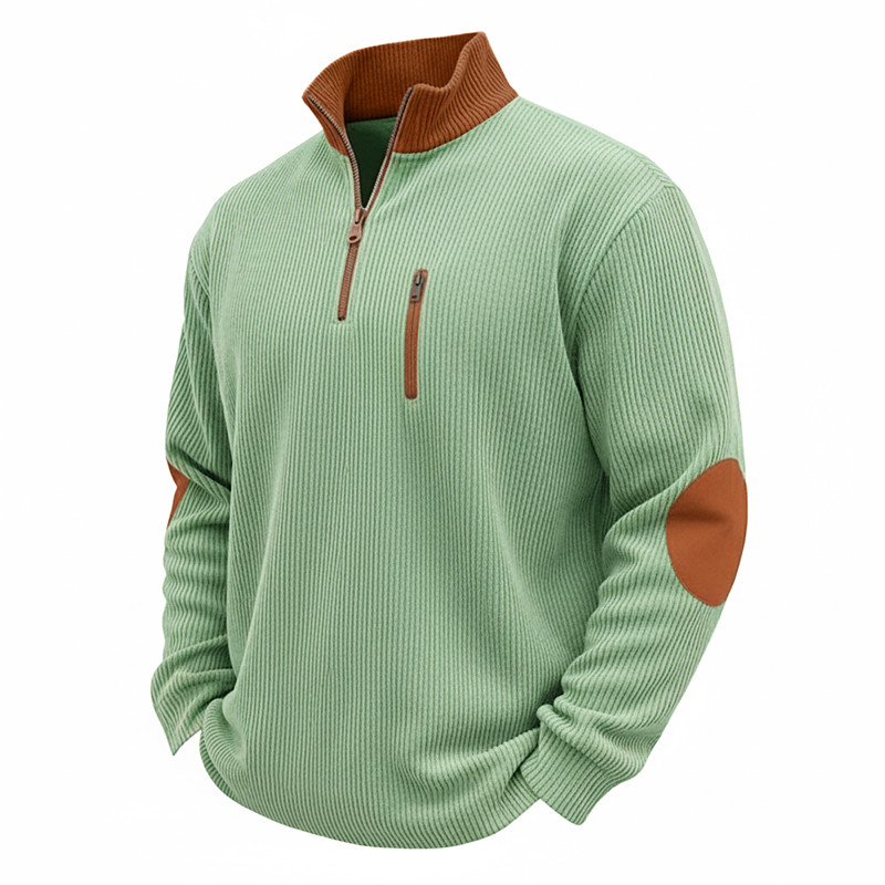 Men's Corduroy Shirt Tee Top Long Sleeve Shirt Shirts With Elbow Patches Long Sleeve Zip Fall Winter Fall Winter Color Block Daily Textured Casual Zip Up Oversized Loose Casual Outdoor Street Light