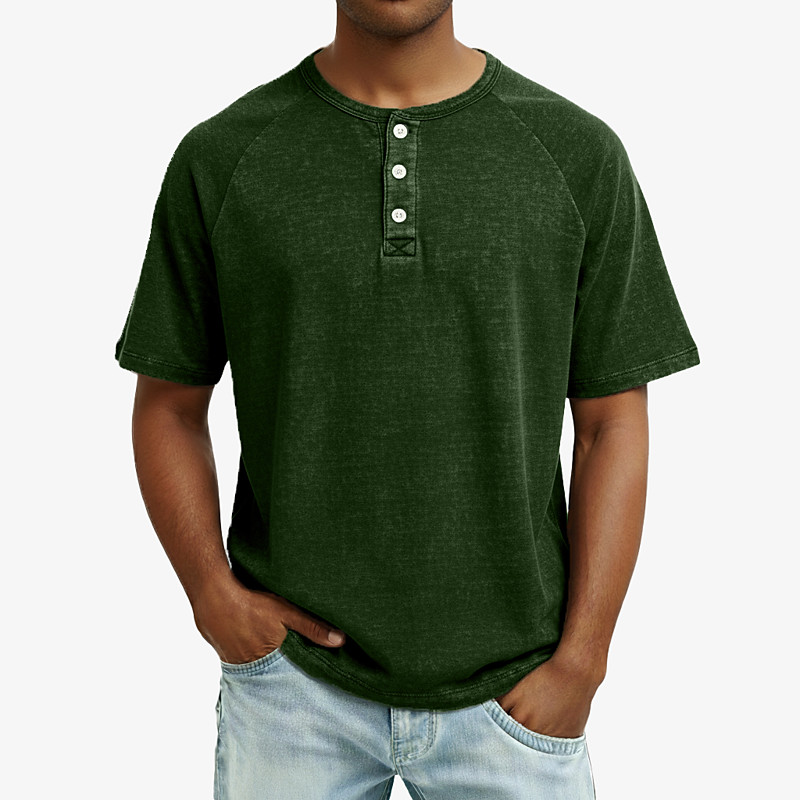 Men Henley Shirt Tee Top Short Sleeve Henley Summer Spring All Seasons Solid Color Fashion Designer Casual Buttons Minimalist Raglan Sleeves Casual Daily Outdoor Light Blue Black Brown Top Tee for Men